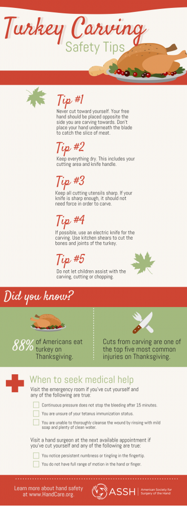 Did you know cuts from carving are one of the top five most common injuries on Thanksgiving? Before you dig in, check out these helpful tips from the American Society for Surgery of the Hand.